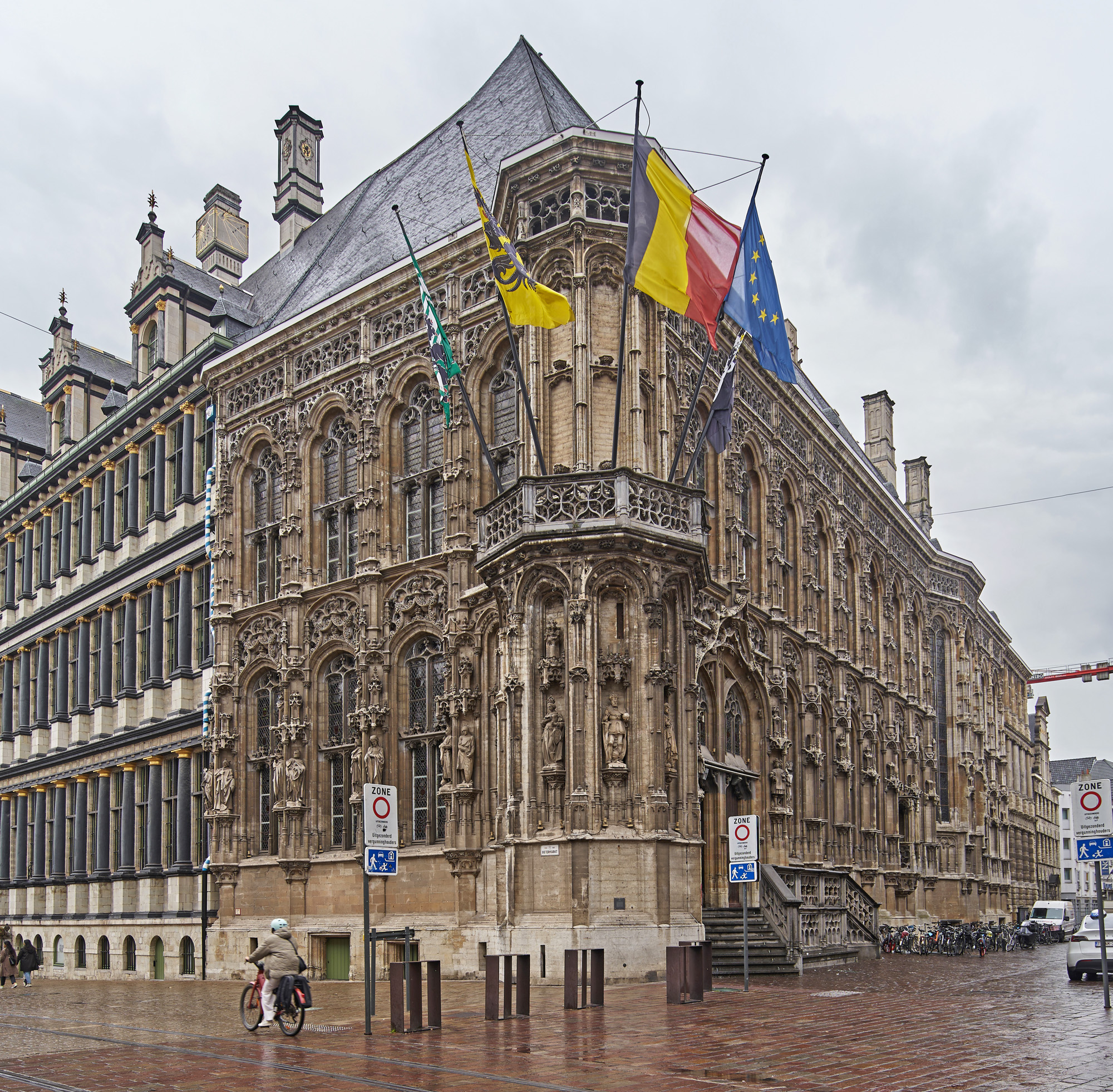 In Gent hatten wir, nach dem Ausflug zum Ursulinenstift, fünf Tage Quartier genommen. Von hier aus haben wir die Nordseeküste und Brügge bereist. Den zweiten Tag der Gent gewidmet war, haben wir im alten Postgebäude (Bild oben) begonnen, das heute ein Einkaufszentrum und ein Hotel beherbergt.