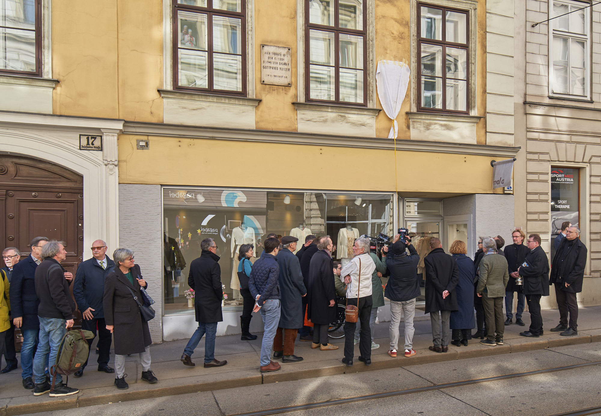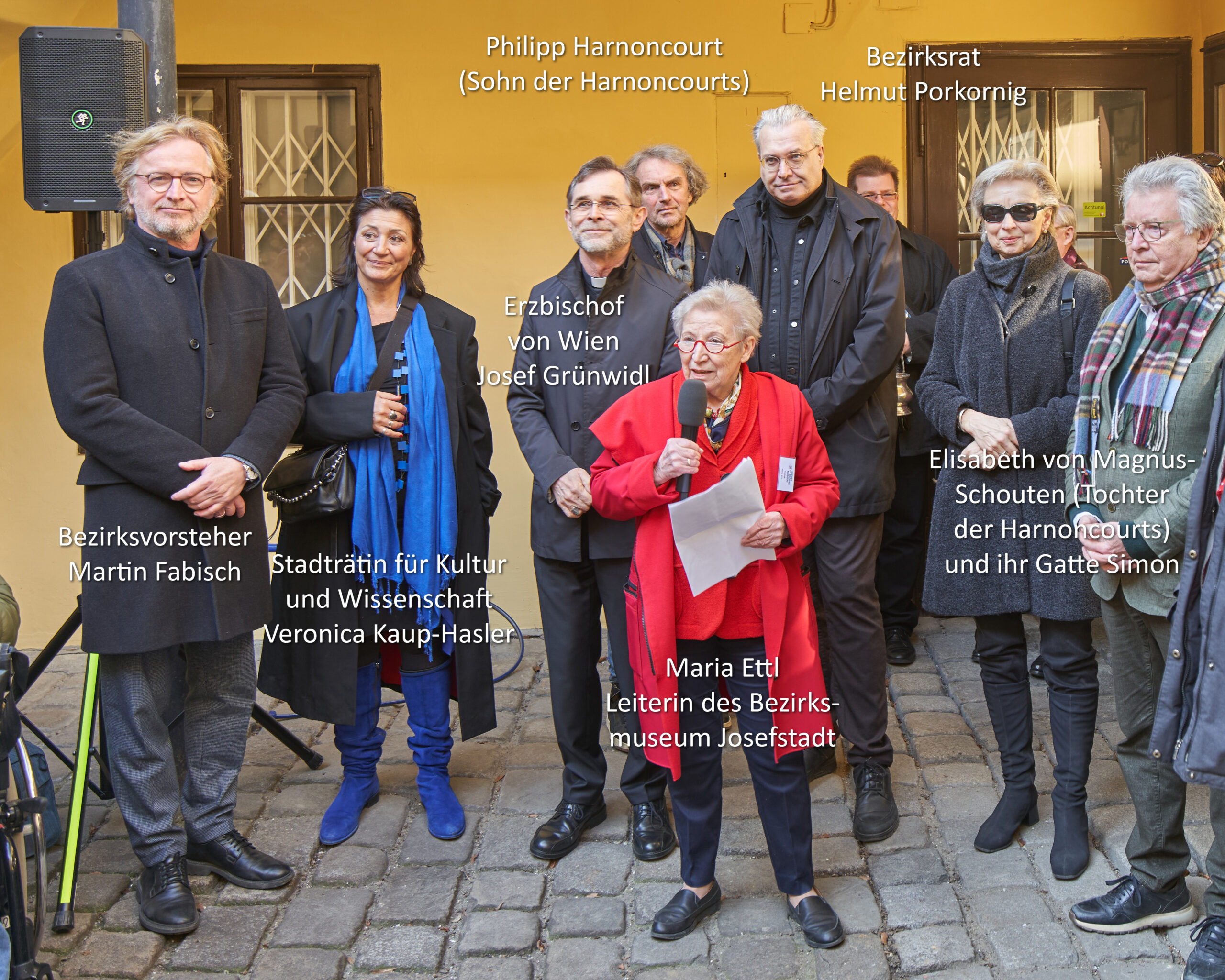 Die Enthüllung nahm im Beisein von Fr. Kulturstadtrat Kaup-Hasler, Bezirksvorsteher Martin Fabisch, Vorsitzender der Bezirks-Kulturkommission Helmut Pokornig, Familienmitgliedern und zahlreichen weiteren Gästen, Erzbischof Josef Grünwidl vor.