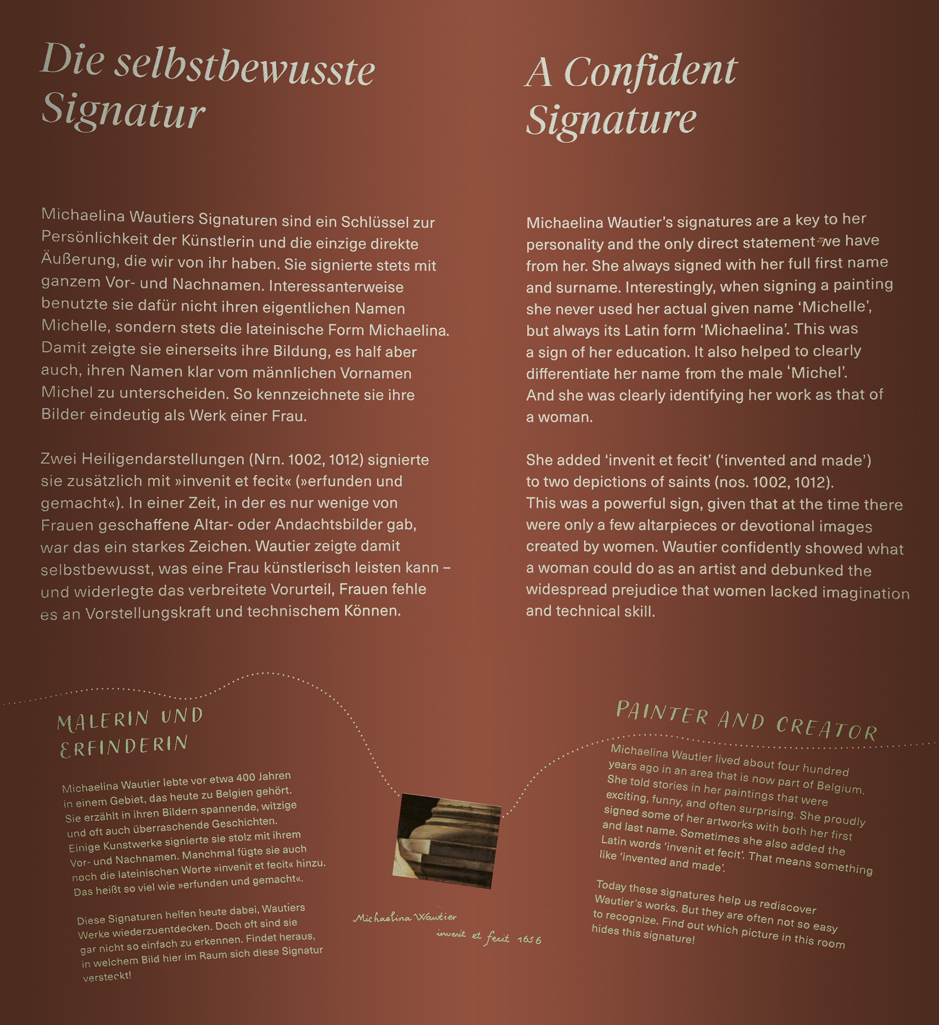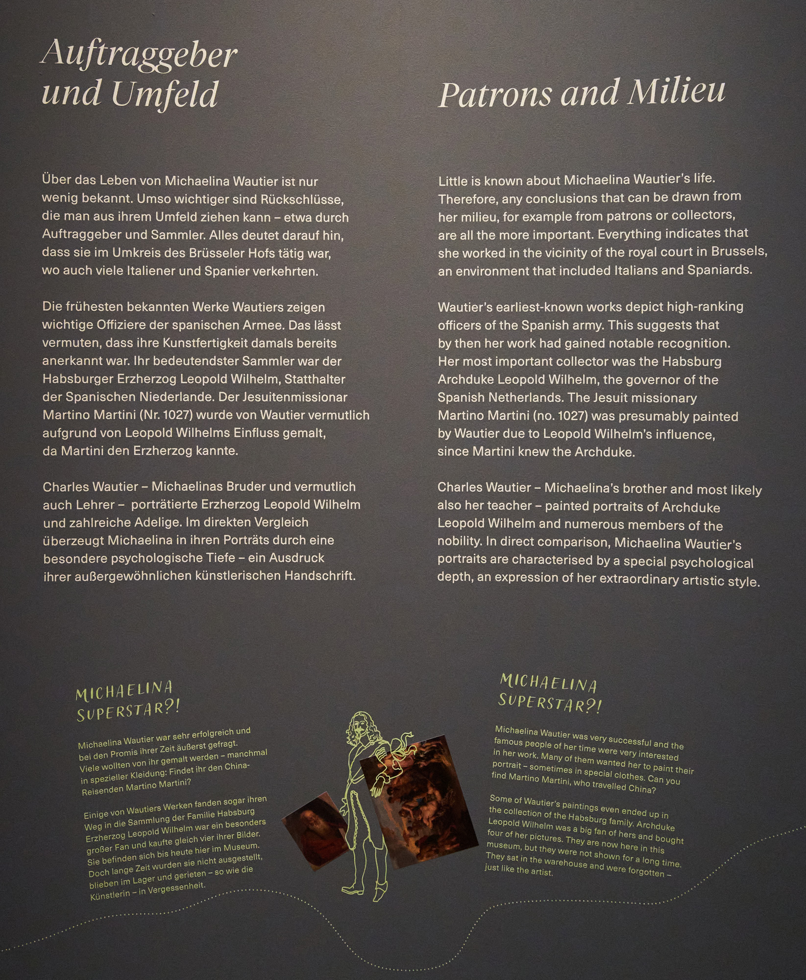 Diese selbstbewusste Frau ist Michaelina Wautier, eine Wiederentdeckung der letzten Jahre. Im Keller des KHM lagerten einige Werke dieser Ausnahmekünstlerin, ohne je ausgestellt worden zu sein. Diese Ausstellung stellt einen repräsentativen Überblick über ihr Schaffen dar.